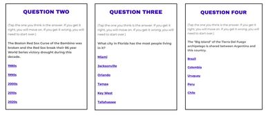 AFTER SCANNING THE RIGHT QR CODE, YOUR TEAM WILL HAVE TO ANSWER A SERIES OF QUESTIONS WITHOUT MISSING EVEN ONE! IF YOU MISS ONE, YOU GO BACK TO THE BEGINNING AND START OVER. ANSWER THEM ALL CORRECTLY AND YOU WULL BE SHOWN A PICTURE TO PROCEED TO THE NEXT RACE STATION.